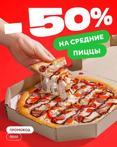 💛 День без акций – не день. Это наше кредо. Вот объявляем 50% на средние пиццы: на доставку по промокоду 0050. Гениальное – простое. Вкусное – выгодно. Подробнее об акции