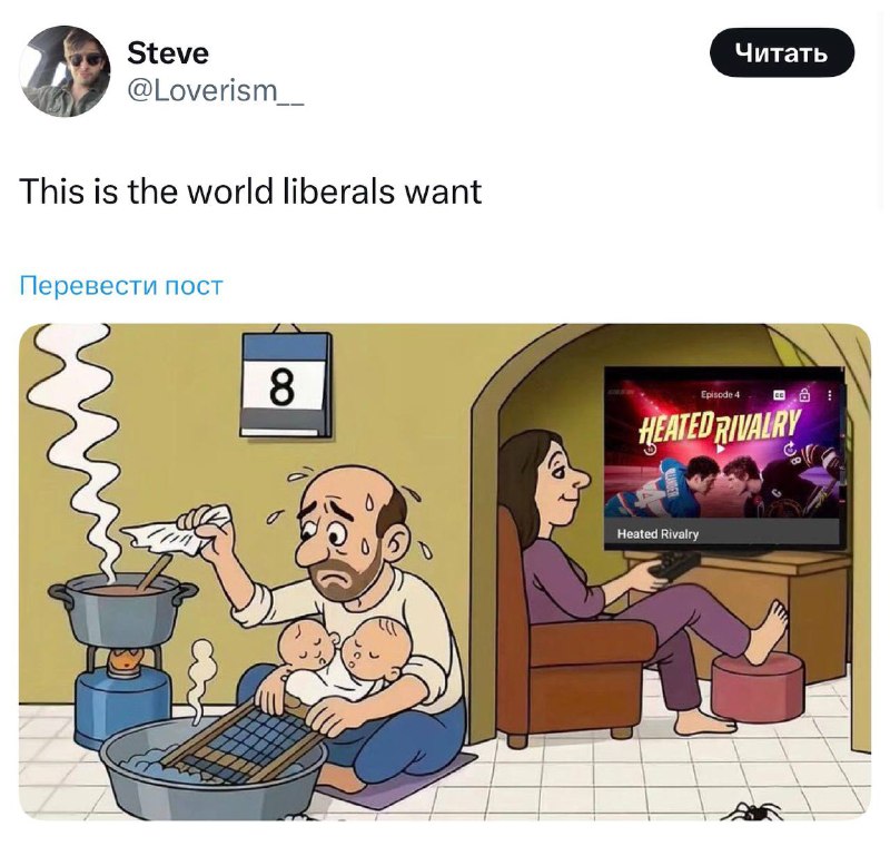 Попался страдальческий нейрослоп от страдающего мужчины, с подписью «вот какого мира хотят либералы». Думаю, вау, где-то я это уже видела, прям недавно. Лет эдак сто назад, даже уже чуть больше! Когд