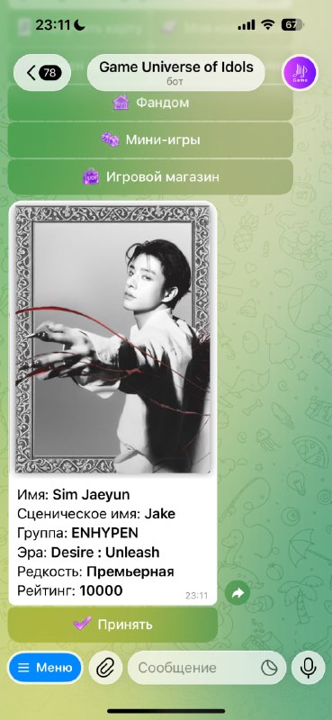 🥹 K-pop карточки уже в Telegram! В этом боте ты можешь собрать коллекцию своих любимых айдолов 😁 @Universe_of_idols_bot 😀 Старт тут Для новичков мы подготовили уникальный промокод, который даст