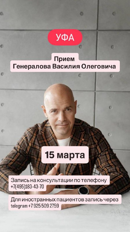 Запись на консультации по телефону +7(495)183-43-70 Для иностранных пациентов запись через telegram +7 925 509 2759