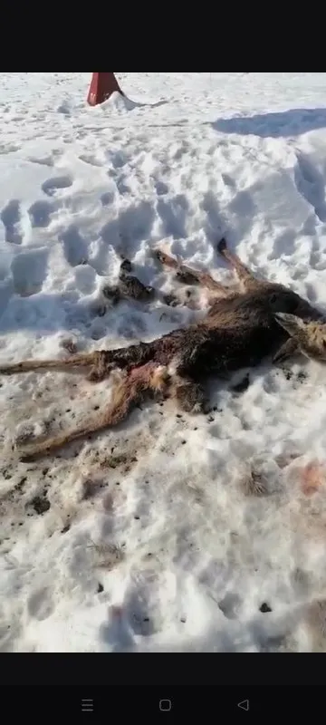 Разорванная косуля около заправки в Лесхозе. Все в курсе, но собаки продолжают свою трапезу. Жаль, видео не грузится.😢❤️