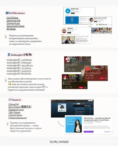 Где я регулярно нахожу идеи для уроков? 🧋💻 Чаще всего я просто беру идеи из аутентичных источников: видео, подкастов, постов и статей на китайском🌟 1️⃣YouTube-каналы Хорошо подходят для тренировк