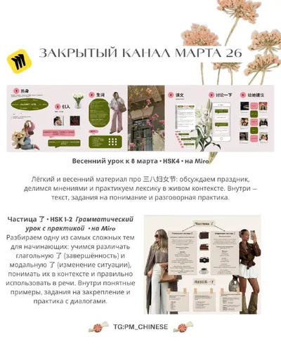 Обзор материалов марта в закрытом канале ✨💻🧋 🌟🐚Март получился очень разнообразным и разговорным: Материалы для уровней HSK1–5 — уроки-квесты, грамматика, видео и готовые разминки. Всё можно сразу