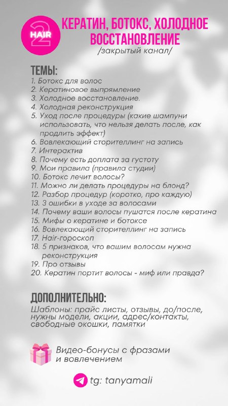 💞КЕРАТИН, БОТОКС, ХОЛОДНОЕ ВОССТАНОВЛЕНИЕ💞 Готовые сторис и шаблоны для мастера реконструкции волос. На канале: 🍖 20 сторителлингов по реконструкции волос+стикеры со сторис 🍖 Дополнительные мате