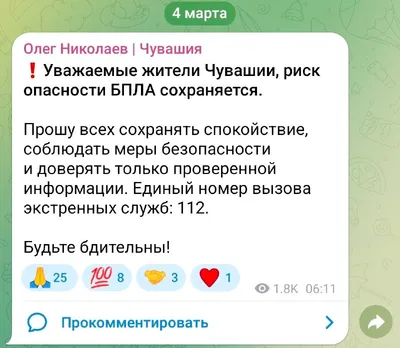 ❗️В Чувашии сохраняется риск опасности БПЛА Об этом заявил Олег Николаев в своем тг-канале. @pnowch