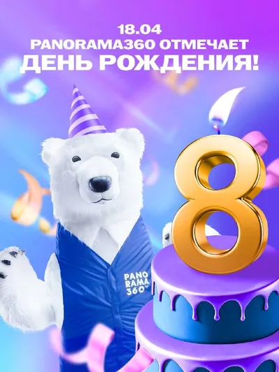 🎉 PANORAMA360 исполняется 8 лет! 18 апреля приглашаем отметить день рождения нашей смотровой площадки, где гостей ждёт безлимитное мороженое, а ещё дети до 8 лет включительно смогут посетить 89 этаж