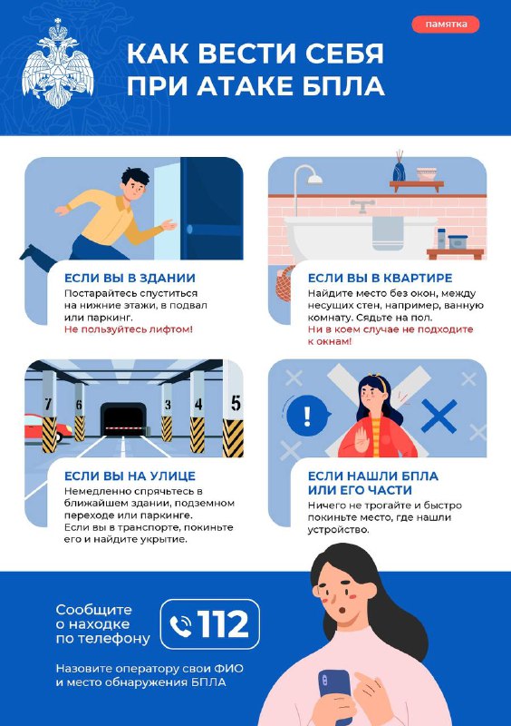 Заметили беспилотник? Сохраняйте спокойствие и не паникуйте. Что нужно делать при обнаружении или атаке БПЛА – смотрите в инфографике. Сохраняйте памятку себе и делитесь ею с друзьями. Эти простые