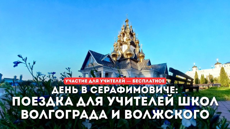 💡 День в Серафимовиче: безвозмездная поездка для учителей из Волжского и Волгограда Этот день пройдет в Усть-Медведицком Спасо-Преображенском монастыре в Серафимовиче, в месте поистине Божественной