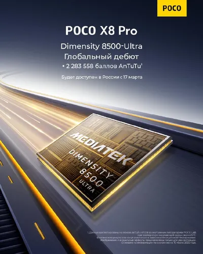 Еще один мощный процессор! Dimensity 8500-Ultra впервые дебютирует на глобальном уровне в #POCOX8Pro. С такой мощью только вперёд — без компромиссов. #СкоростьНаМаксимум @POCORussiaOfficial