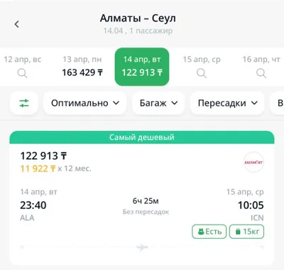 🛫 В Южную Корею от 122 913₸ В стоимость билетов включен багаж до 15 кг. Это в Halyk Travel началась распродажа на рейсы Eastar Jet из Алматы. Примеры цен (в одну сторону): Алматы → Сеул • перелё