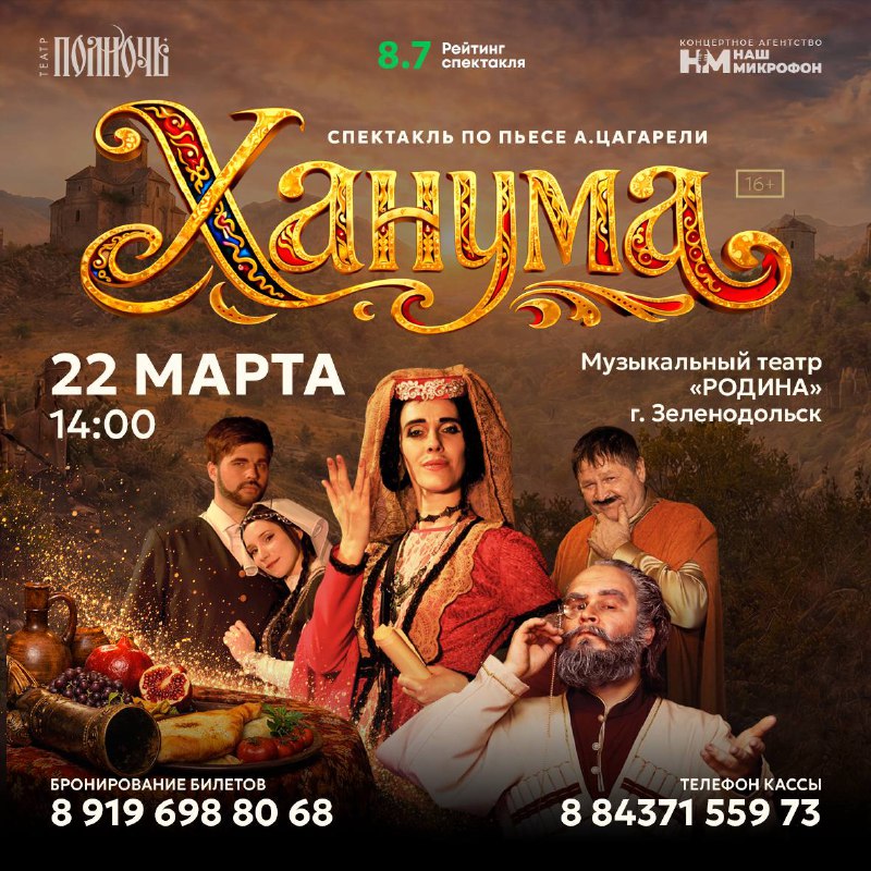 ‼️РОЗЫГРЫШ В ПОДСЛУШАНО ЗЕЛЕНОДОЛЬСК‼️ 🎭 ХАНУМА — разыгрываем 6 билетов на легендарную комедию на русском языке ⭐️ Рейтинг 8.7 | Московский режиссёр 📅 22 марта, воскресенье, 14:00 📍 Музыкальный т