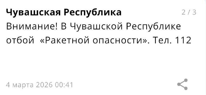 🗣МЧС: отмена ракетной опасности на территории Чувашии. ⚡️ Наш канал в MAX