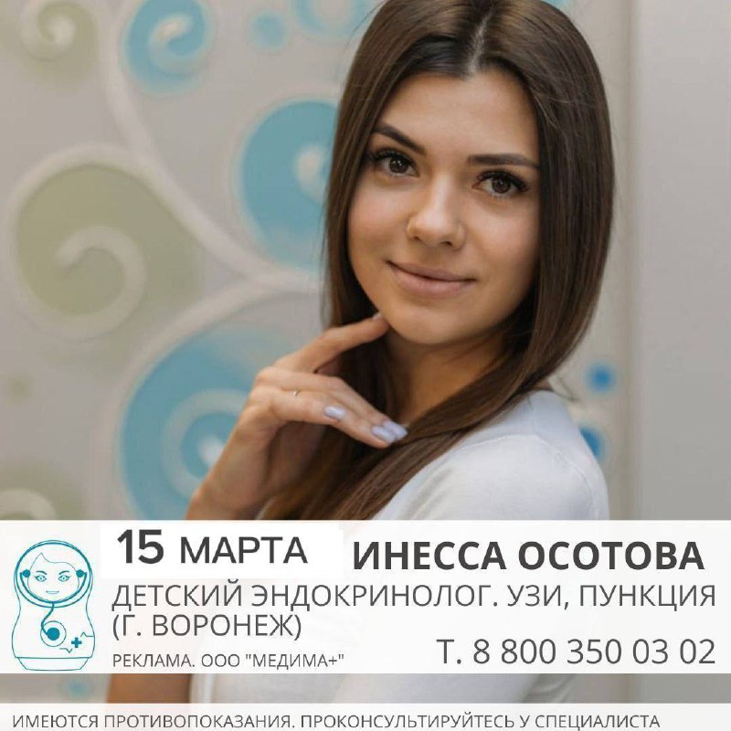 ⚡Детский эндокринолог из Воронежа в "МедимаДок" (Россошь, ул. Пролетарская, 169 М). 15 МАРТА приём проведет детский эндокринолог Инесса Осотова. Доктор самостоятельно проводит УЗИ-диагностику щитов