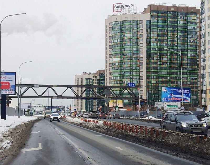 😱 В Мурино полным ходом идет строительство надземного пешеходного перехода через Охтинскую аллею. Мост соединит жилой район с популярным торговым центром «Экопарк» и улицей Шувалова, что решит пробл