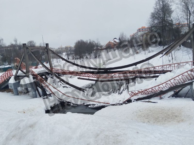 ‼️Разрушен пешеходный мост на Волоколамском шоссе Спасибо администрации, что не чистили его от снега, который и стал причиной разрушения. На нем уже были трещины, но никто восстанавливать их не соби