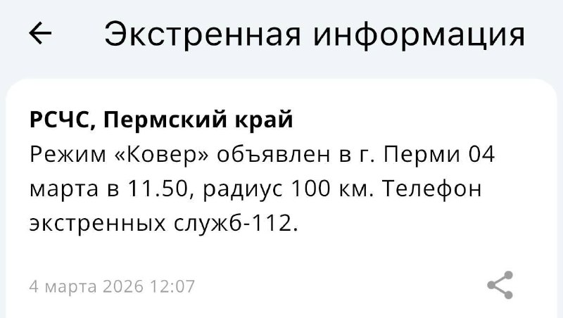 ⚡️⚡️В Перми введён режим «Ковёр» радиусом 100 километров. 👉 Подписаться | Подслушано Закамск