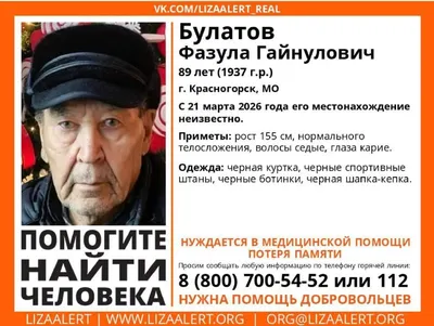❗️ПРОПАЛ ЧЕЛОВЕК❗️ 🛑 Булатов Фазула Гайнулович, 89 лет, Красногорск, МО. 🛑 С 21 марта 2026 года его местонахождение неизвестно. 🛑 Нуждается в мед. помощи! 🛑 Дезориентирован! Контакты для св