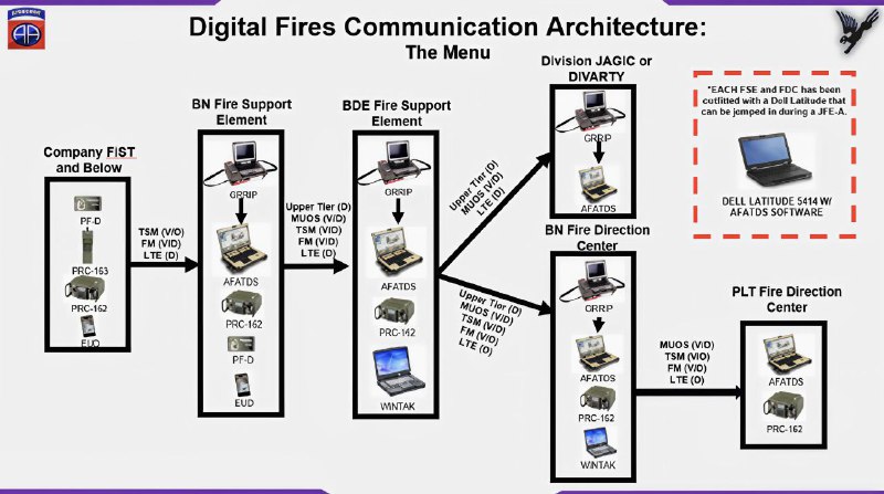 🇺🇸 Компоненты цифровой архитектуры управления огнем 82-й воздушно-десантной дивизии СВ США в рамках концепции Integrated Tactical Network (ITN). Используются защищенные ноутбуки Dell Latitude (вклю