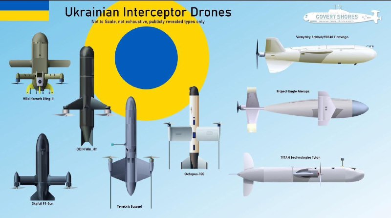 ❗️Украинские дроны-перехватчики, прошедшие испытания в ходе боевых действий. • Sting-II 🇺🇦: основной перехватчик российских беспилотников. Скорость 160+ км/ч, высота до 3 км. • ODIN Win_Hit 🇺🇦: