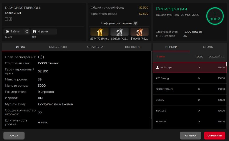 🪐 Успейте получить билет для Бриллиантового Фриролла! 8 марта в 20:00 МСК на PokerPlanets стартует праздничный Diamonds Freeroll, попасть в который можно только по билету. Игроки могут получить до