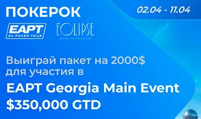 🎟 Розыгрыш: 50+ билетов на сателлиты для EAPT Georgia! 15 марта в 22:05 МСК на ПОКЕРОК стартует Final Stage $200 EAPT Georgia Satellite на 20 пакетов по $2K каждый для поездки на Main Event одноимён