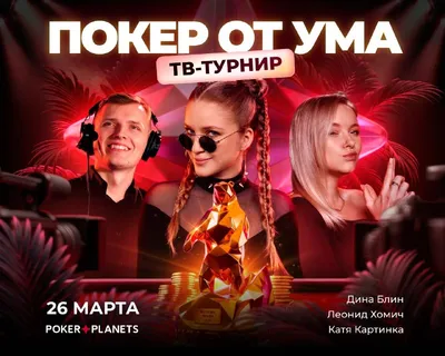 НАМЕЧАЕТСЯ БОЛЬШОЕ ШОУ! ДИНА БЛИН, ГЛЕБ ТРЕМЗИН, ЛЕОНИД ХОМИЧ И НЕ ТОЛЬКО! 📺 Прямой эфир 📺 26 марта в 19:30 ТВ-ТУРНИР "ПОКЕР ОТ УМА" Карты решают не всё! Во время серии Russian Poker Cup, 26 м