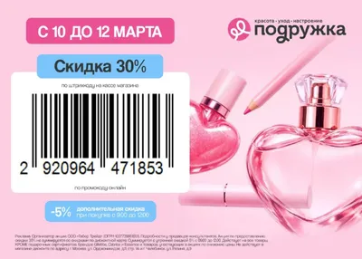 🟣ТОЛЬКО 2 ДНЯ🟣 Скидка до 35% в магазинах ПОДРУЖКА🔥 ❤️☺️👍☺️👍👍☺️👍🙂❤️ Скидка суммируется с утренней 5% скидкой с 9:00 до 12:00, тем самым выгода вырастает до 35% 💋 скидка 30% от любой суммы в
