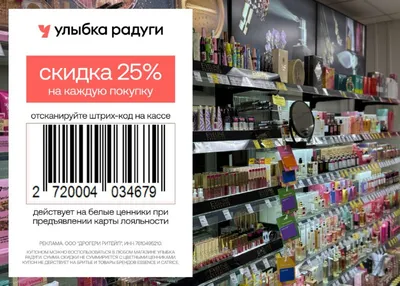 Купон в Улыбку Радуги ❤️ Для скидки нужно показать на кассе: 1. Карту лояльности Улыбка Радуги 2. Купон по ссылке: https://ulibka.prfl.me/pokypaemS/g6p1f5?erid=2RanynDZFWS Скидка 25% действует на к