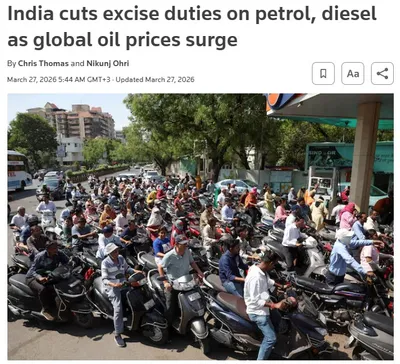 ⚡️Из-за стремительного роста цен на нефть Индия значительно уменьшила налоги на бензин и дизельное топливо, сообщает Reuters. Акцизы на бензин были снижены более чем в четыре раза, а для дизельного