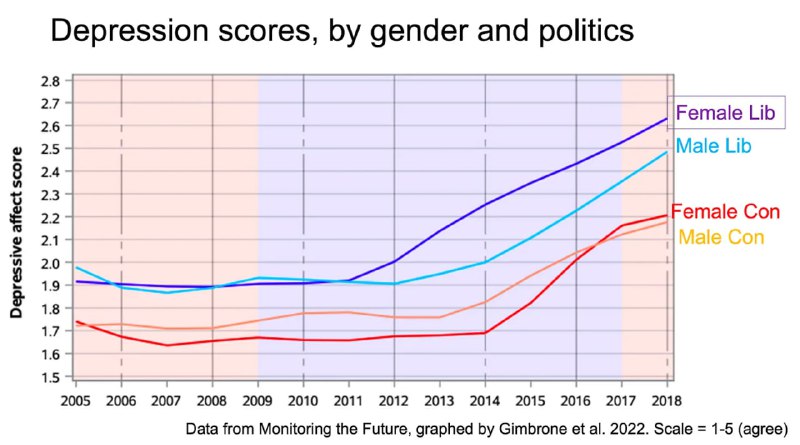 Почему американская либеральная молодежь такая депрессивная? Я когда-то писал, что между теми, кого относят к либералам и к консерваторам в американском контексте, существуют определенное неидеологич