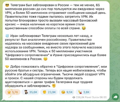 Павел Дуров наконец высказался о блокировке Telegram в России: он заявил, что начинается «цифровое сопротивление» — мессенджер адаптируется под эту меняющуюся ситуацию.