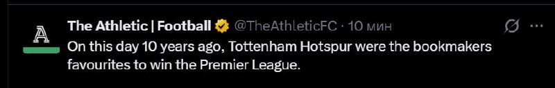 Сегодня перед дерби с Фулхэмом вероятность вылета Тоттенхэма из АПЛ составляет 18%. А ровно 10 лет назад в этот день их считали фаворитами на титул по букмекерским котировкам.
