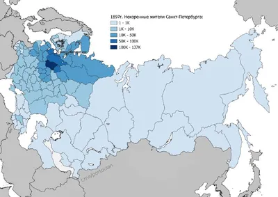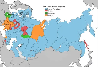 Распределение выходцев из провинции по четырём крупнейшим городам Российской Империи 1897г. Абсолютное большинство регионов естественным образом тяготело к столичному Санкт-Петербургу, Варшава концен