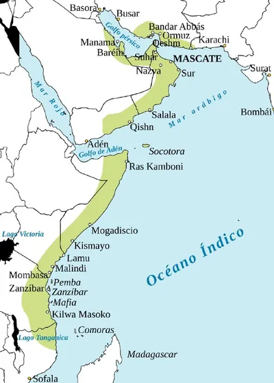 В XVII-XIX веке Оманская Империя занимала весьма обширные территории на западных берегах Индийского Океана и простиралась от Бендер-Аббаса на севередо мыса Дельгадо на юге, этакое азиатско-африканское