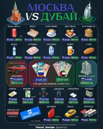 💰Где дороже? 🇷🇺 В Москве или Дубае 🇦🇪 Сравниваем средние температуры цены в городах 🌆 Источники: Росстат, Deutsche Bank Research Institute, Numbeo, цены в магазинах, глаза 👀 А проверить цен