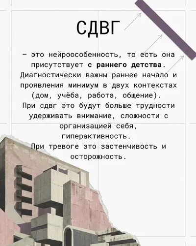 _тревога или сдвг? И там, и там бывает рассеянность, туман в голове, прокрастинация, внутреннее напряжение, проблемы с началом или завершением задач. поэтому я заручилась поддержкой своего коллеги в