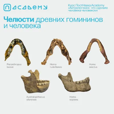 Нижняя челюсть современного вида человека Homo sapiens отличается от нижних челюстей всех других гоминид подбородочным выступом, большей грацильностью, меньшим развитием жевательного рельефа, более уз