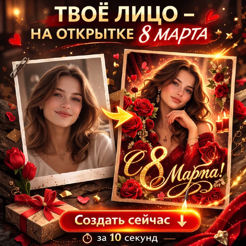 Какая ты на открытке к 8 Марта? 💐 Сейчас это пробуют все в MAX Создай свою за 10 секунд — бесплатно ✨ max.ru@8марта