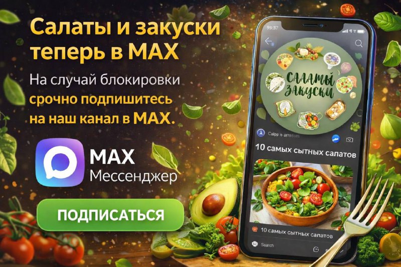 🥗Протеиновый салат для активного рациона КБЖУ на 100 г: 90 / 8 / 3,2 / 6,4 Открыть рецепт 🇷🇺Мы теперь в MAX - подписаться
