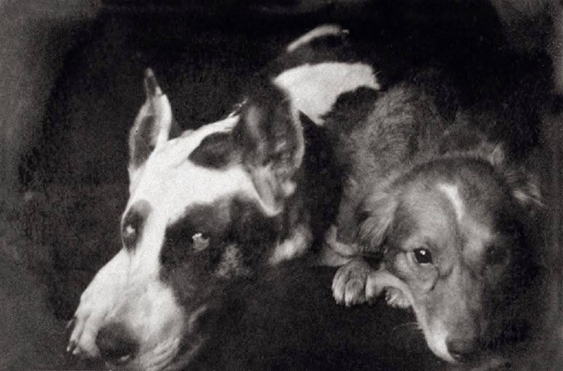 "Мраморный" пёс Алисы Порет по кличке "Хокусава" и собака Даниила Хармса "Кепка", 1932- 1933 год Из альбома "Алиса Порет", изданном Галеев-Галереей, 2013 год