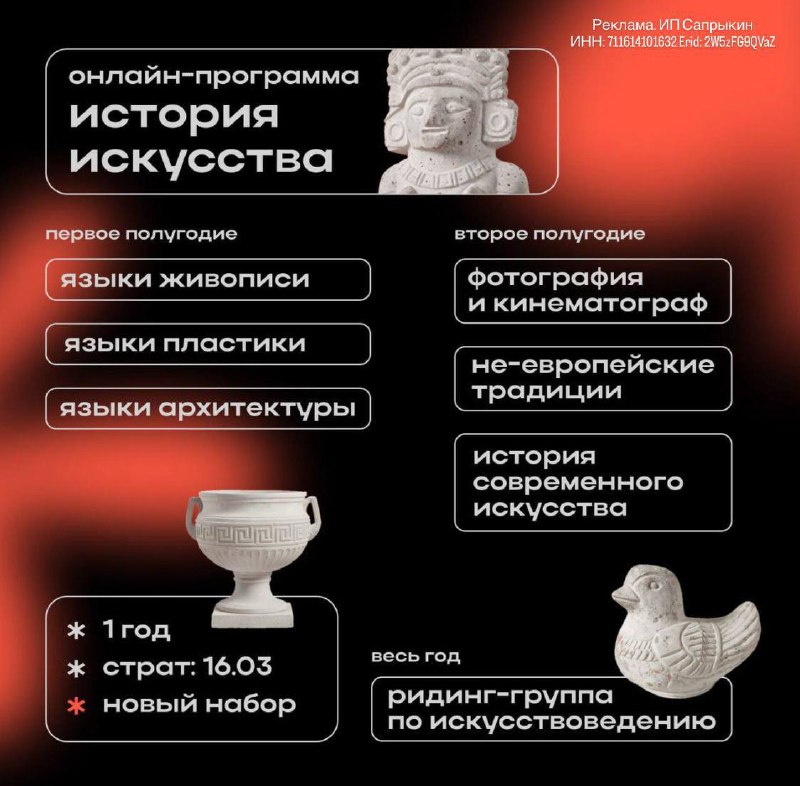 Идёт второй набор на годичную программу «Пробы» — «История искусства». Начинают уже весной. Первый набор показал, что Страдариум не зря взялся создавать такую длинную программу об искусстве. На перв