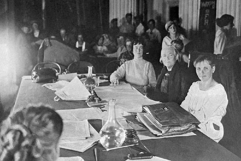 Александра Коллонтай и Клара Цеткин в президиуме второй Международной социалистической женской конференции, 1910 г. Фото: ТАСС