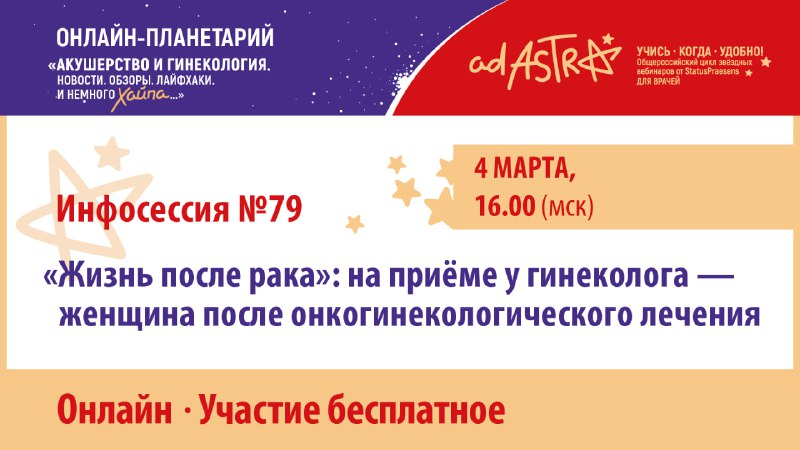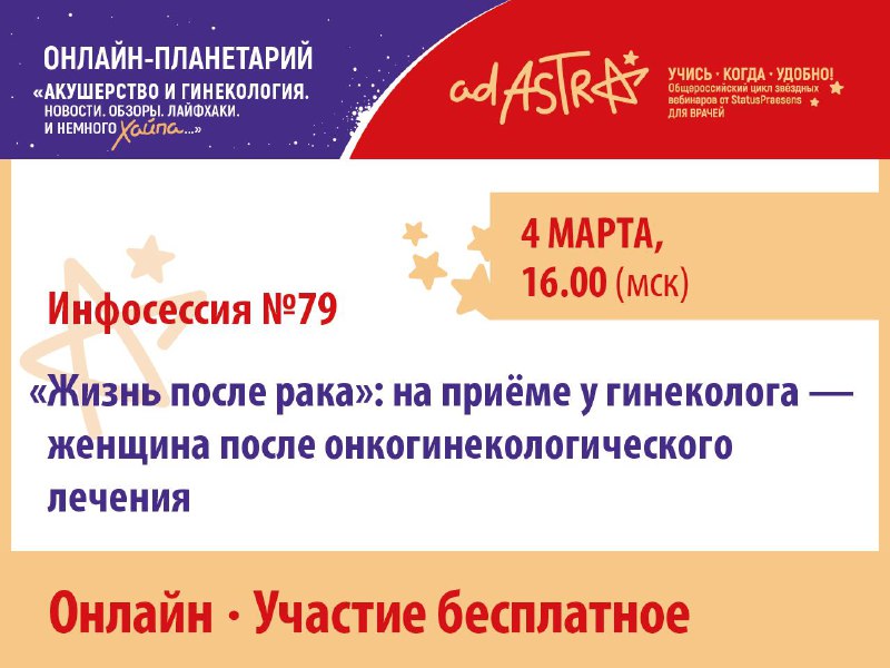 Уже сегодня пройдёт онлайн-инфосессия «“Жизнь после рака”: на приёме у гинеколога — женщина после онкогинекологического лечения». 🖥 Формат: онлайн. ⏰ Время начала: 16.00 (мск). Представляем научную