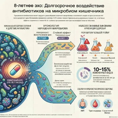 Ничего себе исследование опубликовали в Nature Medicine - один курс сильнодействующих антибиотиков может нарушить микрофлору в организме аж до 8 лет, Выводы - только по реальным показаниям антибиотики
