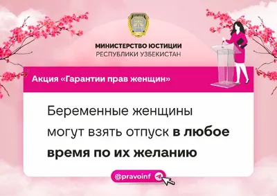 #Права_женщин ✅ Согласно законодательству, беременным женщинам и женщинам, родившим ребенка, ежегодный трудовой отпуск предоставляется по их желанию соответственно перед отпуском по беременности и ро