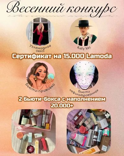 Мы к вам с весенним конкурсом!🌷 Дорогие, в честь самого долгожданного теплого сезона разыграем среди наших подписчиков 3 ценных приза: 1 — Сертификат на шопинг в Lamoda номиналом 15.000 2 — Бьюти-