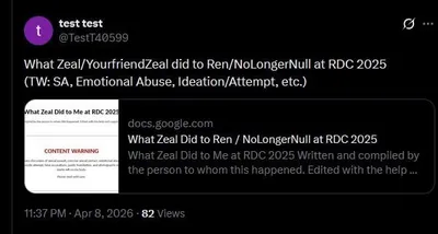 отрывок В ночь на 3 сентября 2025 года в Сан-Хосе, штат Калифорния, за два дня до начала RDC, Zeal, разработчик Pressure on Roblox, совершил сексуальное насилие на меня в моем гостиничном номере. Я п