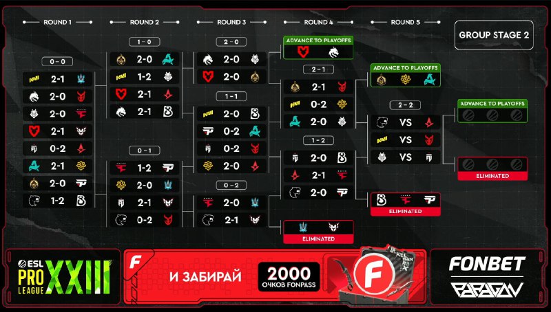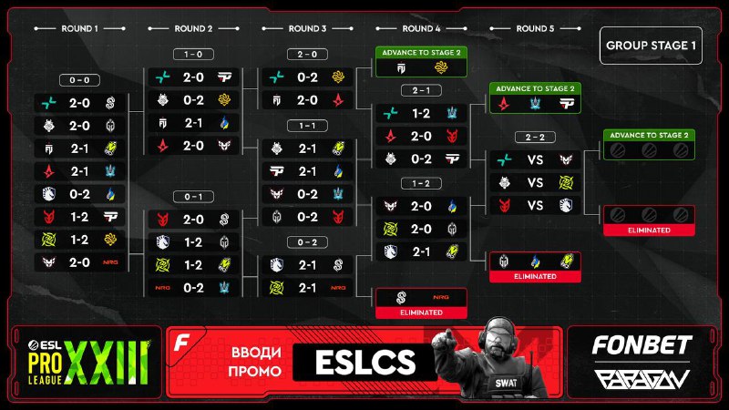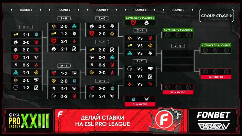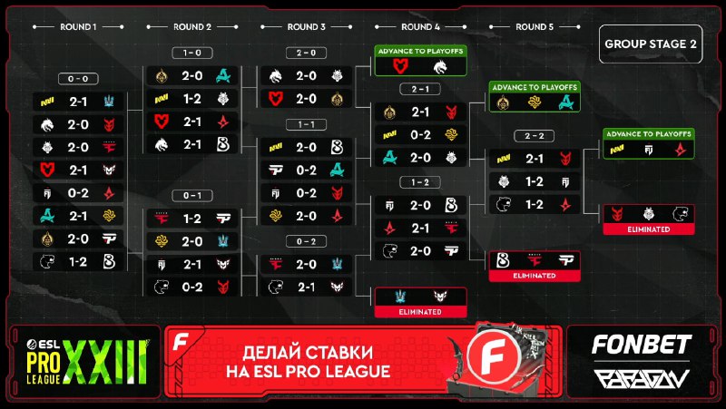 Команды решили не бороться за Stage 2 — все матчи закончились 2:0 🤡 Завтра на ESL Pro League S23 дебютируют Spirit, MOUZ, FURIA, FaZe, The MongolZ, B8, NAVI и Aurora! Начнём следить за очередной шв