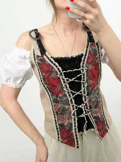 баварская блуза практически музейный экспонат! размер s/m темная вставка по центру с резиночкой ОГ 80-98 ОТ 68-78 длина 53 его невозможно перестать разглядывать ❤️ 5.000 рублей для заказа пишите