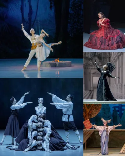 #Афишавыходногодня 🌷Весенние контрасты в #ПримМариинский На этой неделе: восточная эстетика «Баядерки», пронзительный «Евгений Онегин», весёлый маскарад «Летучей мыши» и смелый авангард балетов «Св